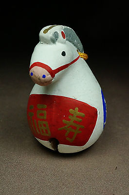 kissako 3439 Japanese Antique Clay Doll Netsuke Bell Vintage Horse Figure