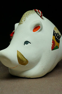 kissako 3441 Japanese Antique Clay Doll Netsuke Bell Wild boar Vintage Figure