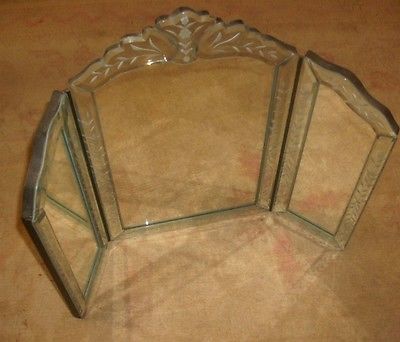 ART DECO STYLE ARCHED ETCHED TRI-FOLD TRIPPLE VANITY MIRROR