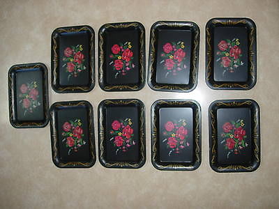9- VINTAGE BLACK WITH RED ROSES SMALL TOLE TRAYS