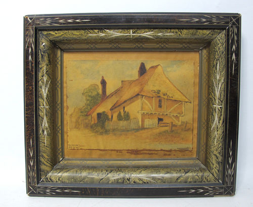 Antique 19th Century GH Baumann Watercolor Painting Victorian Ebonized Frame yqz