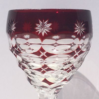 Pair of Antique Ruby Cut to Clear Glass Cordial Glasses Stars
