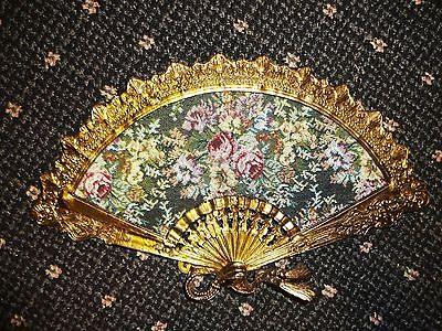 VINTAGE ORNATE Brass Victorian FAN SHAPED PICTURE FRAME with FLORAL TAPISTRY