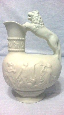 OLD GRECIAN URN PITCHER LION HANDLE SATIN PORCELAIN 5 CUP MINT