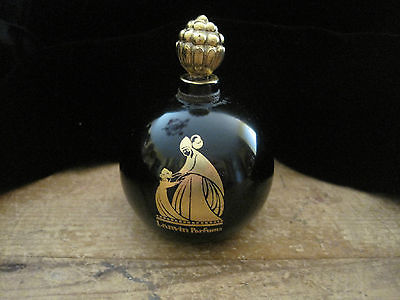 VINTAGE LANVIN ARPEGE ROUND BLACK PERFUME BOTTLE WITH RASBERRY TOP
