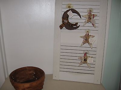 Handmade Primitive Fabric Bowl Fillers,Moon & Stars w/Rusty,Bell Pin,tie, 4 ea