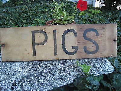 Vintage Old Original Painted Wood Farm Country Sign "Pigs" Double Side 21" x 6"
