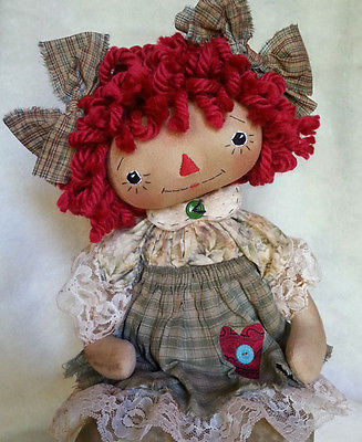 Title (ebay affiliate link): Handcrafted Primitive Raggedy Ann Doll Sage Green Floral Cotton & Lace Dress