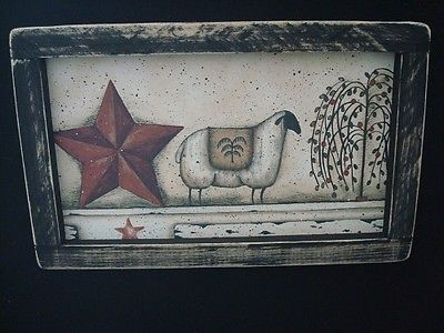 Title (ebay affiliate link): Country Primitive Print **SHEEP~STAR~WILLOW** w/ Weeper Tree 11" x 6 1/2"