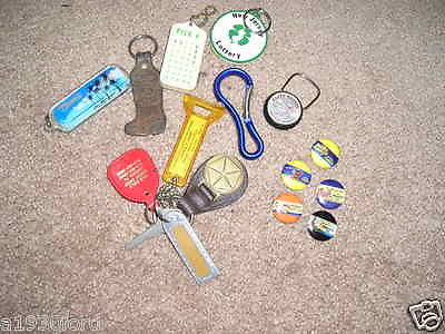 Assorted Vintage key fobs new Sunoco pin buttons Antique Dodge key Box Lot parts