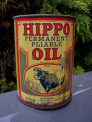 vintage Hippo Oil can - nice graphics - rare - steel - 1940's