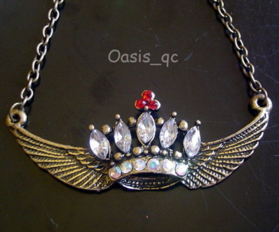 Title (ebay affiliate link): Antique Style Bronze CZ Feather Crown Pendant Necklace