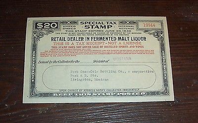 Title (ebay affiliate link): PARK COCA-COLA BOTTLING CO. - Livingston, Montana - 1939 - IRS Tax Receipt
