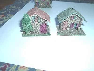 4 Vintage Putz House Christmas Ornaments Mica Decoration Wire Hanging Loop Japan