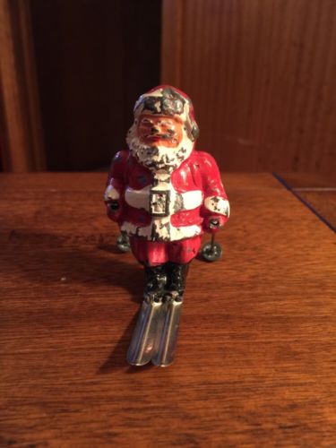 Vintage Cast Metal Santa on Skis with Poles