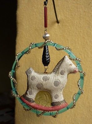 Title (ebay affiliate link): VTG.PAPIER HORSE CHRISTMAS TREE ORNAMENT IN GLASS ROUND