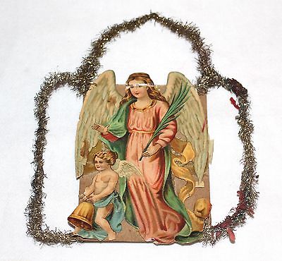 Title (ebay affiliate link): 1880s Angel guarding Cherub ringing Bell. Tinsel & Paper Xmas Ornament. Germany