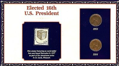 Title (ebay affiliate link): Elected 16th President Abraham Lincoln Card with Stamp and 2 Wheat Cents 1953/54