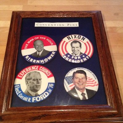 Title (ebay affiliate link): 4 Republican Convention buttons - IKE Nixon FORD Reagan 1952 1984 -original pins