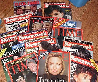 Title (ebay affiliate link): 15 Magazine Lot - Time Newsweek Hillary Bill Clinton Scandal Lewinsky Most 1998