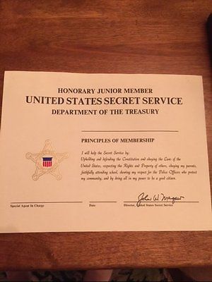 Title (ebay affiliate link): U.S. Secret Service Youth Jr. Member Certificate RARELY SEEN