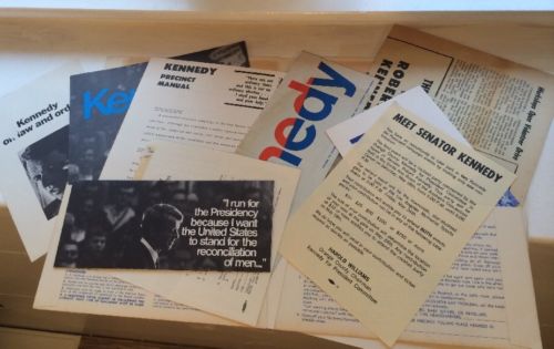 Title (ebay affiliate link): 10-PC LOT ROBERT F. KENNEDY FLYERS Precinct Man. Bumper St. Students For RFK Cal