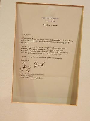 President Gerald Ford Signed Thank You Letter to Sinclair Armstrong 1974