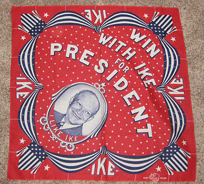 Title (ebay affiliate link): 1952 WIN WITH IKE EISENHOWER COLORFUL PICTURE CAMPAIGN BANDANNA