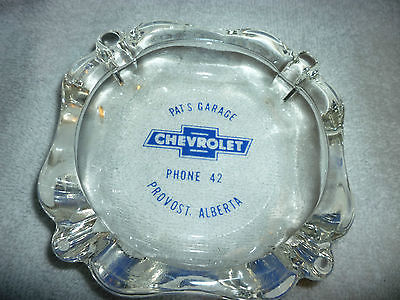 VINTAGE CHEVROLET GLASS ASHTRAY PATS GARAGE PROVOST ALBERTA PHONE 42