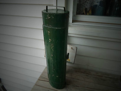 Antique Tin Document Carry Cylinder Shape Box Green Paint 22'' L Old Latch Org