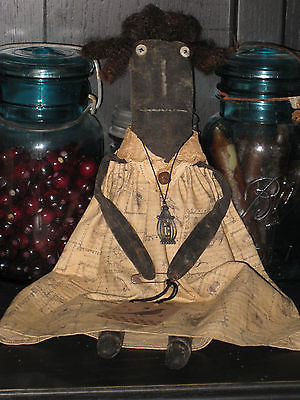 PRIMITIVE Black Folk Art Doll Cupboard Tuck