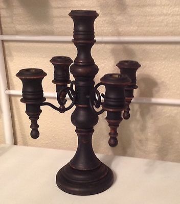 PRIMITIVE WOODEN CANDLEABRA, CANDLE KEEP