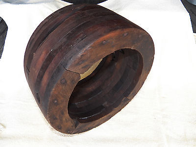 Antique Vintage Wooden Foundary Flat Belt Wheel Pulley Hit Miss Steam Punk Decor