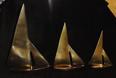 Title (ebay affiliate link): Vintage Set Of Three Solid Brass Enesco Sail Boats Nautical Home Decor