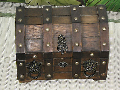 Vintage Eames Era Retro Wooden Pirates Lion Head Treasure Chest Jewelry Box