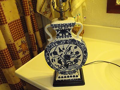 UNIQUE VINTAGE BLUE & WHIT BLUE WILLOW LAMP PORCELAIN LAMP WITH SHADE