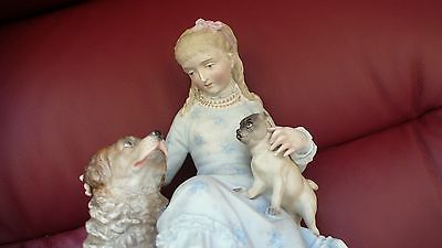 Title (ebay affiliate link): FABULOUS HAND-PAINTED 13" CERAMIC MEISSEN COPY GIRL 2 DOGS WELL DONE STAMPED