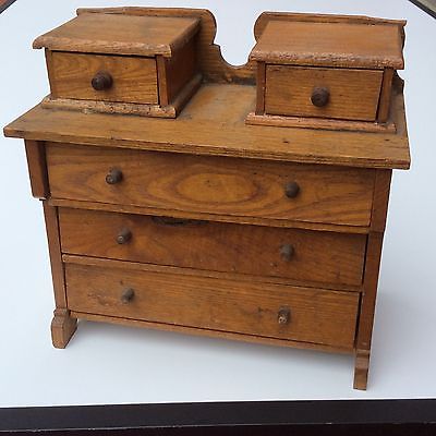 Antique Vintage Wooden Oak Doll Furniture Chest of Drawers Dresser