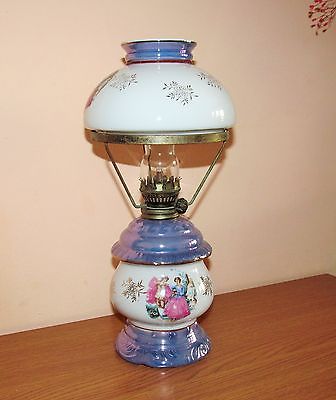 Super vintage single burner oil lamp with chimney and shade, compact size