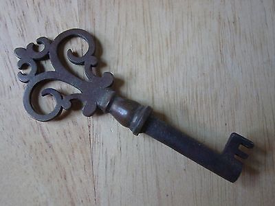 Ornate Antique Brass & Steel Barrel Key ~Victrola Furniture Cabinet Skeleton Key