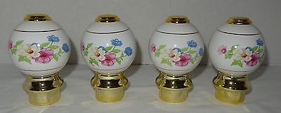 VINTAGE PORCELAIN FLORAL GLOBE FINIALS 4 BRASS BED SET OF 4