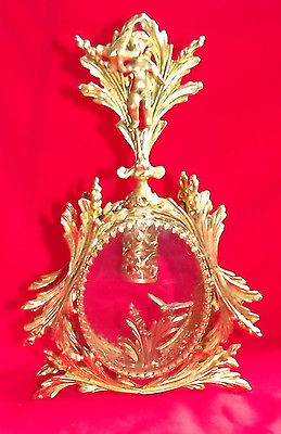 Antique / Vintage Gold Ormolu Perfume Bottle~Stylebuilt or Matson ~cherub topper