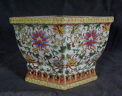 Antique Chinese Jardiniere Pot Vase Famille Verte Yellow Ming Scrolls Porcelain