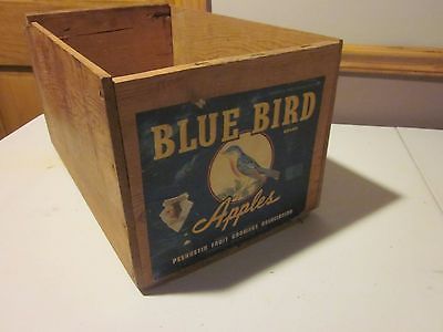 Vintage Wooden Fruit Crate BLUE BIRD APPLES 10 1/2" X 12" X 19 1/2" WOOD BOX