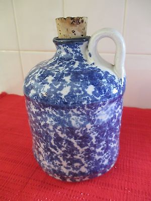 Vintage STONEWARE JUG CROCK With CORK COBALT SPONGEWARE 6" Tall