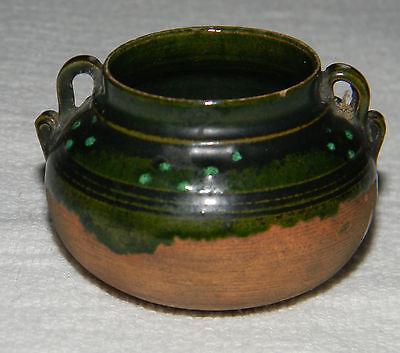 Antique Miniature Folk Art Pottery & Enamel Bowl Hand Thrown VTG