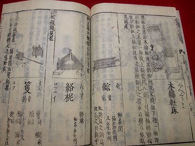 1-7 Japanese weaving machine farm tool Woodblock print BOOK wakan35