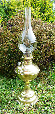 Stunning Central Draught Burner Brass Oil Lamp. Unusually Wide Funnel.