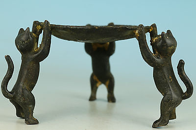 Nice Chinese Old Bronze Collectable Handwork Carved Cat Statue Oil Lamp Ornament