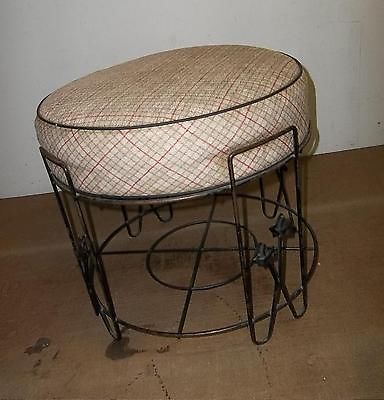 Title (ebay affiliate link): Round Hairpin Leg Mid Century Ottoman Plaid Vinyl Red Tan
